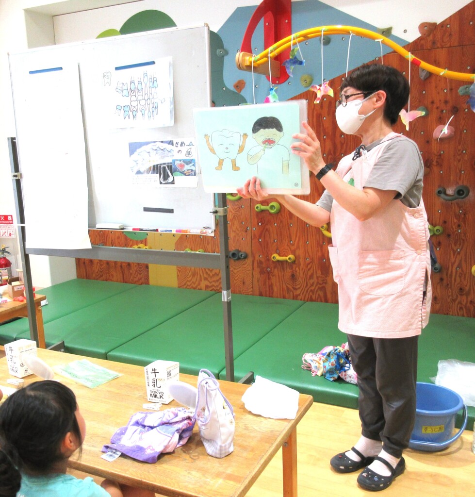栁澤看護師は「6歳臼歯について」を紙芝居で説明しました。