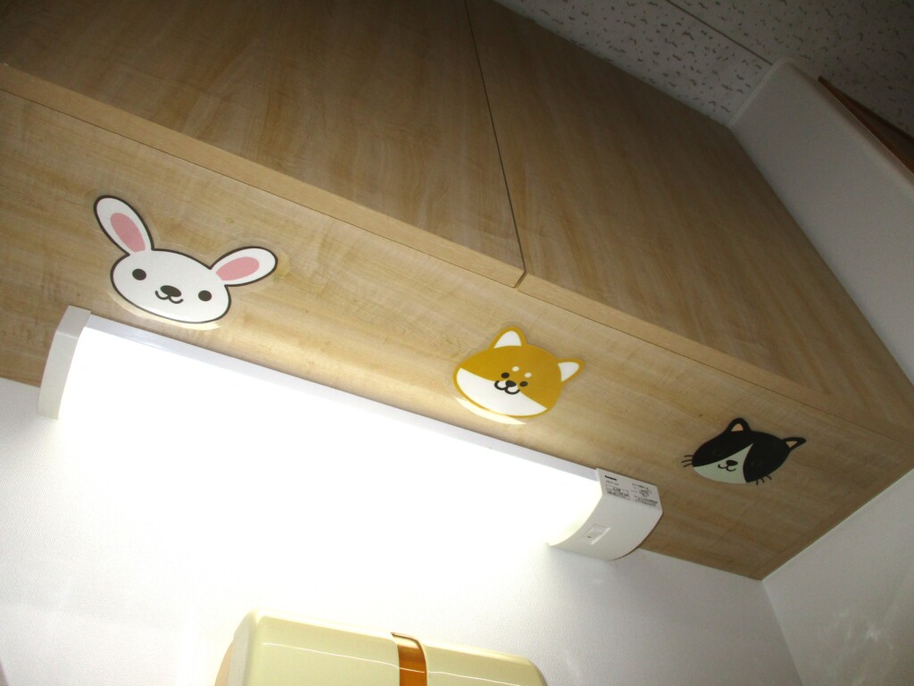 おうちのうがい・手洗いをする場所の天井にお気に入りの絵(手書きの動物やアニメキャラクター)を貼ってもよいと思います。