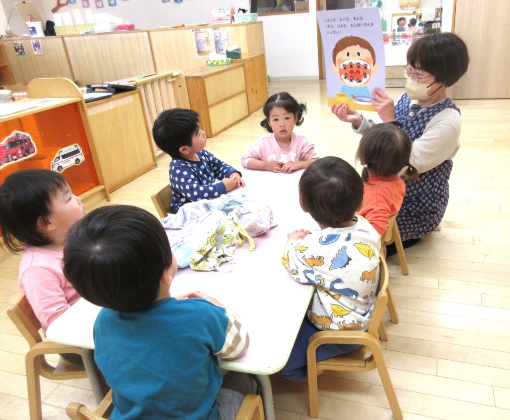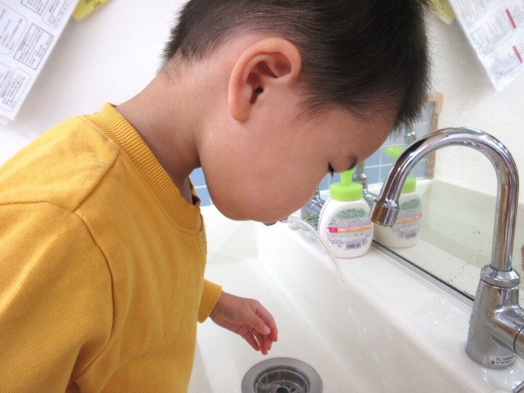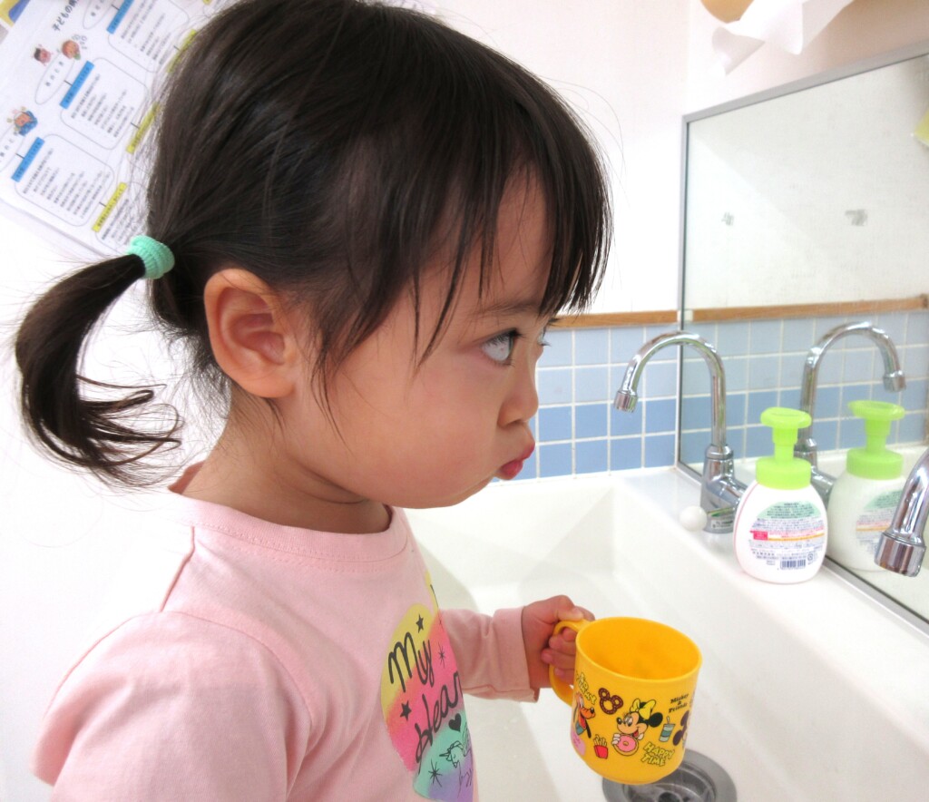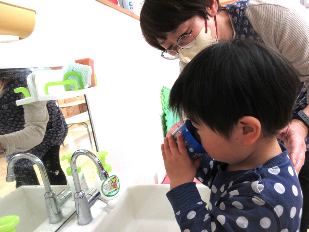 ※星1組では、ブクブクうがいを知る(覚える)期間として、午後のおやつ後にブクブクうがいをします。