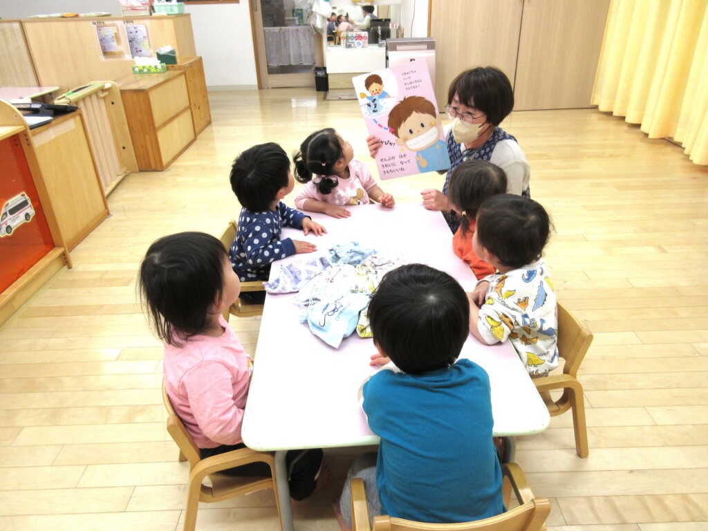 むし歯予防の一環で、星1組でブクブクうがいの指導をしました。